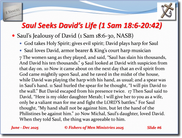 Saul’s Jealousy of David (1 Samuel 18:6-30)