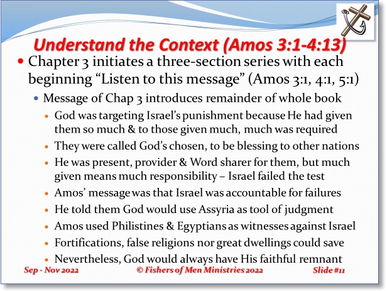Second, Amos provided the teaching that all nations are under the authority of God and subject to His holding them accountable to Himself. Sometimes Amos had to remind Israel that they were accountable, as well.