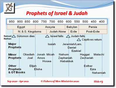 The chart above shows the chronological relationship between the prophets and Israel’s divided kingdoms. As we read the prophecies delivered to the kings of Israel and Judah, we can see where the prophets existed in time, and what circumstances surrounded them and their prophesies. We are studying Isaiah who prophesied to Judah (Southern 2 Tribes) shortly before and just after the fall of Israel (the Northern 10 tribes) into the captivity of Assyria in 722 BC.