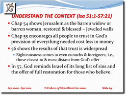 Understanding the Context (Isaiah 51:1-57:21, Cont.)