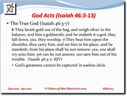 Artisans may be able to pour out the gold, weigh out the silver and fashion objects into false gods for you, but those gods will fall down and become worshippers rather than the worshipped. These kinds of gods are carried on the shoulder, they place him where they want to and he will stand there and have no ability to move. Some may approach these gods and cry loudly to them but they will never answer, neither can they save the worshipper from their problems. They are useless!