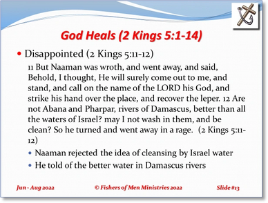So, they said, “How much rather then, when he saith to thee, ‘Wash, and be clean’” The servants knew the crux of the healing had nothing to do with the modes or methods. It only had to do with the fact that Elisha was the man of God. As such, Elisha had the full authority to call for the healing of Naaman whether he was present with him or not. Why not just believe and be healed?
