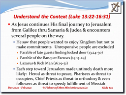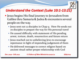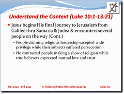 Understand the Context (Luke 10:1-13:21, Cont.)