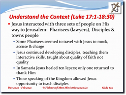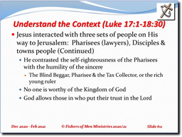 Understand the Context (Luke 17:1-18:30, Cont.)