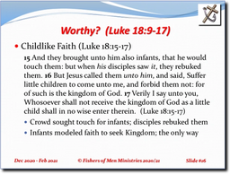Verse 15 we see people bringing their little children to Jesus. The right-minded parent wants the best for their children and will seek the blessings of the Master for them as early and as often as possible. They bring the little ones to the Lord, but the disciples saw it as a hinderance for Jesus and told the people they were wrong to do this thing. When Jesus saw what the disciples were doing, He corrected them and told them to allow the little children to come to Him and do not prevent any of them who want to come. This part of the quotation has a message for each of us as well. Unfortunately, I had to learn this lesson publicly.