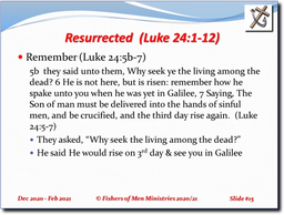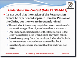 Jesus continued to warn the Apostles that He would face persecution, arrest, torture, death and resurrection awaiting Him in Jerusalem. The behavior of the Apostles during the trials and at the cross showed they did not accept the warnings of death or resurrection of the Lord. Nevertheless, Jesus continued to reach out to all unbelieving Jews to prepare them for their coming judgement.