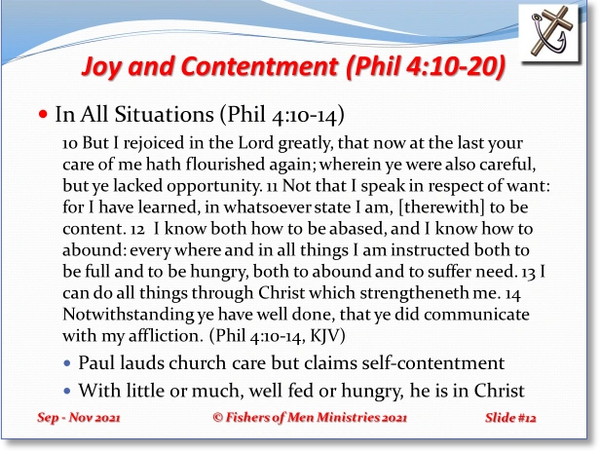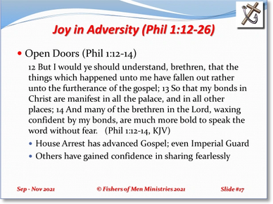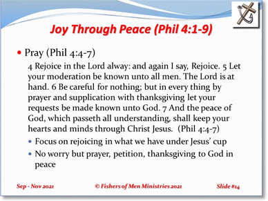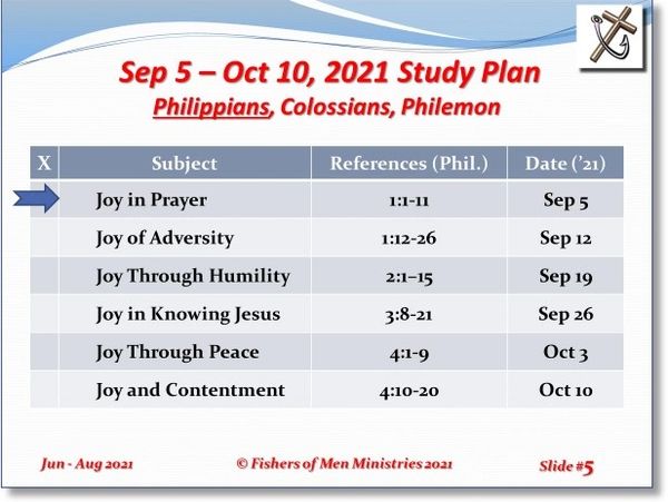 Philippians is presented in September and October 2021 as shown here. These six studies all begin with the word "Joy." That is the tenor of the letter from Paul to be read to the church.