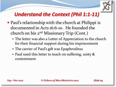 Understand the Context (Phil 1:1-11, Cont.)