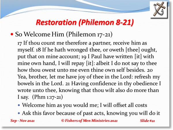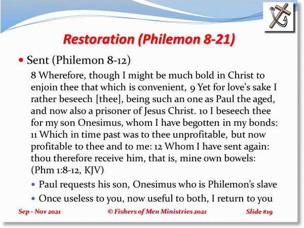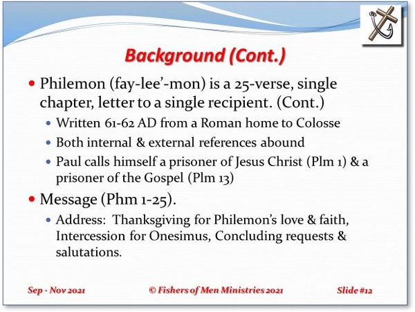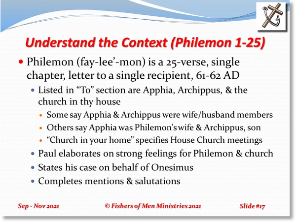 Paul’s Letter to Philemon (Philemon 1-25, Cont.)