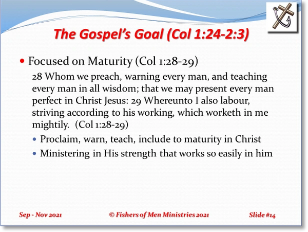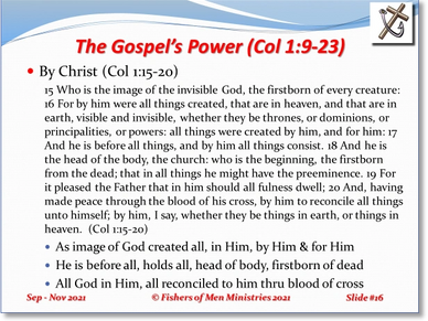 The singular focus of the six studies in Colossians is the Gospel of Jesus Christ. Our last study of the quarter is from Philemon to discuss Restoration.