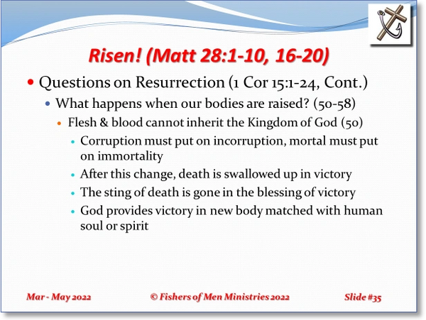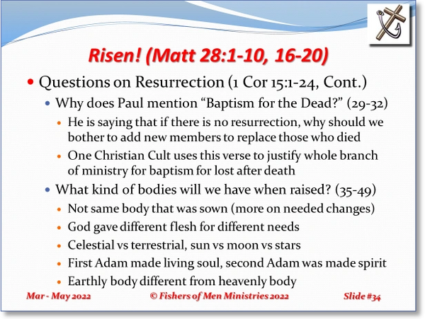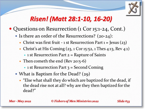 Paul had responded to questions on the Rapture of the Church in 1 Thessalonians 4:13-18. He was sure to respond specifically to questions concerning what would happen to believers who had already died before Christ returned for the church. He stated that the dead in Christ would be raised first, and they would not go ahead of those who were alive. He said the spirits/souls of the dead would return on the cloud as Jesus returned and their bodies would be raised to complete the resurrection of the dead in Christ. Their new, completed bodies would be joined in the air by those who were alive and changed in Christ, Then all return to Heaven with the Lord. Paul even added the words, “Therefore comfort yourselves with these words” (1 Thess 4:18).