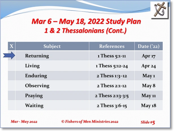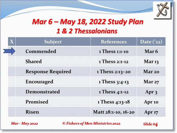 The opening schedule consists of six studies in 1 Thessalonians and a special Easter study from Matthew's Gospel on April 17.